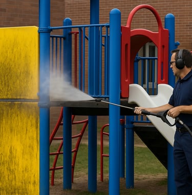 🔹 Enlèvement de graffitis ou traces tenaces sur murs et sols 🔹 Traitement de zones antidérapantes (entrées d’usines, aires piétonnes) 🔹 Entretien de clôtures industrielles, portails, systèmes de sécurité extérieurs